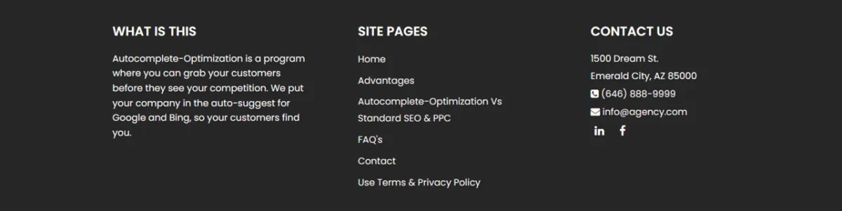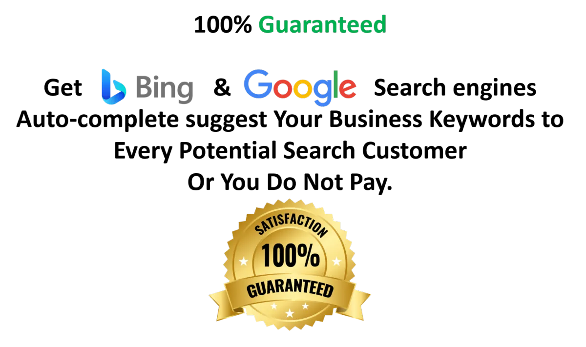 Auto-Complete Suggest Optimization is a program where you can grab your customers before they see your competition. We put your company in the Auto-Suggest for Bing & Google,